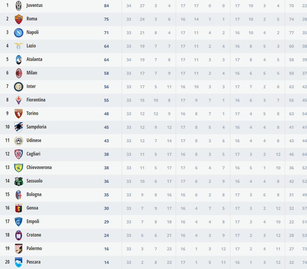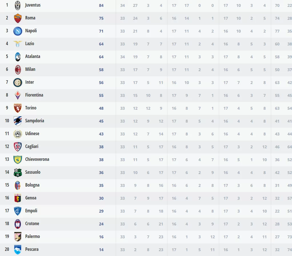 Nel finale i padroni di casa riescono a pareggiare con Freuler dopo una rocambolesca azione. L’Atalanta raggiunge la Lazio al quarto posto a 64 punti in attesa del derby di Roma. La Juventus stabilmente prima a 84.