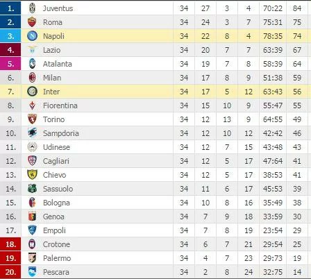 Con questo risultato gli uomini di Maurizio Sarri tornano a -1 dalla Roma, con la sfida per il secondo posto che è sempre più aperta. Ricordiamo che qualora Roma e Napoli arrivassero a pari punti la Roma è avanti in virtù della differenza reti favorevole ottenuta negli scontri diretti, visto il risultato di 1-3 al San Paolo e la vittoria di 1-2 all’Olimpico per i partenopei.