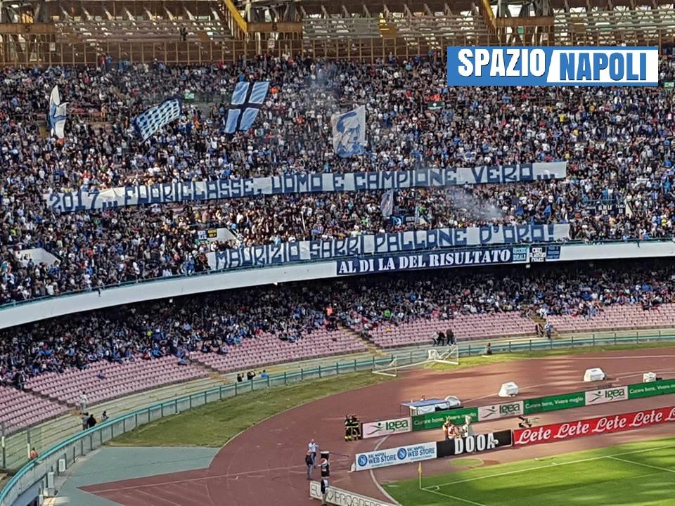 L’ultimo attestato di stima è arrivato dalla Curva B prima del fischio d’inizio. Uno striscione apparso che recita così: “2017: fuoriclasse, campione e uomo vero. Maurizio Sarri pallone d’oro”.
