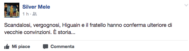 “Scandalosi, vergognosi, Higuain e il fratello hanno conferma ulteriore di vecchie convinzioni. È storia…”, il messaggio del giornalista di Sportitalia, che ironicamente ricorda alla famiglia Higuain quando erano loro a criticare gli arbitraggi che spesso vedono favorita la Juve.