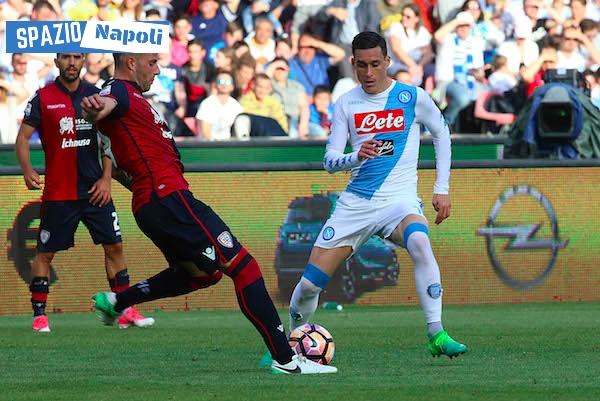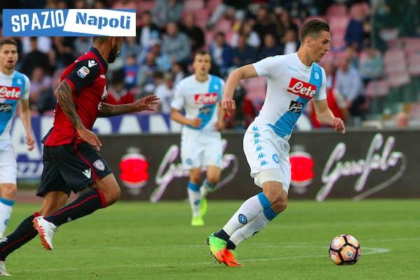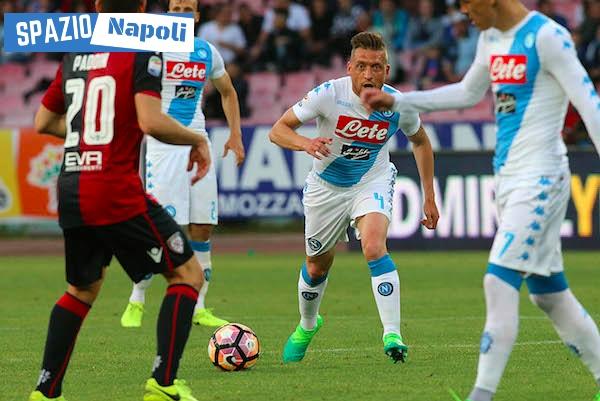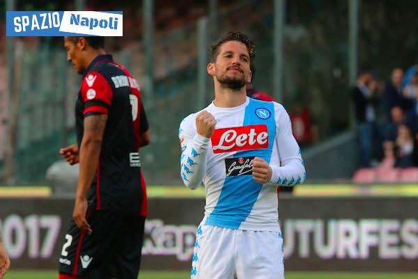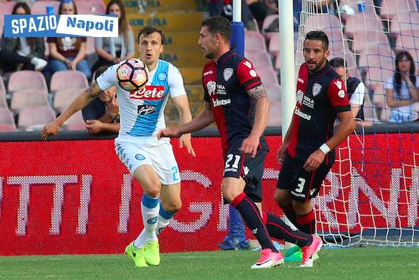 Gioco, spettacolo e punti: il Napoli annichilisce il Cagliari al San Paolo e si porta al secondo posto in attesa di Milan-Roma, che si giocherà domani sera. In alto le immagini del match