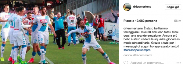 Protagonista assoluto Dries Mertens, anche contro il Cagliari, nel giorno del suo compleanno. Il campione belga, attraverso Instagram, ha scritto: “È stato bellissimo festeggiare i miei 30 anni con tutti i tifosi oggi. Ancora più bello è stato vedere la squadra giocare in modo straordinario. Grazie a tutti per i messaggi di auguri che ho apprezzato tanto!”