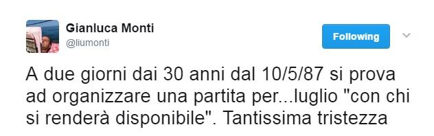 Eppure c’è chi non ha accolto benissimo la notizia. Ad esempio il giornalista della Gazzetta dello Sport, Gianluca Monti, che ha criticato fortemente la scelta della società e della festa. Questo il commento su Twitter: “A due giorni dai 30 anni dal 10/5/87 si prova ad organizzare una partita per…luglio “con chi si renderà disponibile”. Tantissima tristezza“.