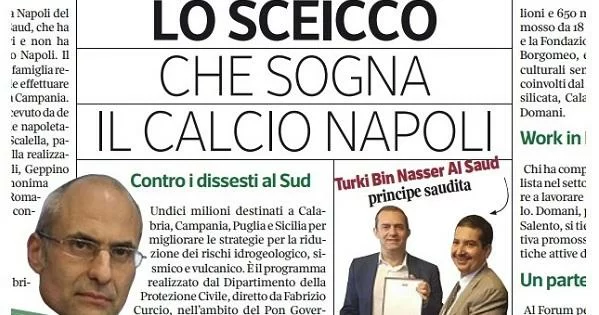 SCEICCO NAPOLI/ Quella che lancia il Corriere del Mezzogiorno, inserto economia, è una vera bomba. ‘Lo sceicco Turki Bin Nasser al Saud sogna il calcio Napoli!’