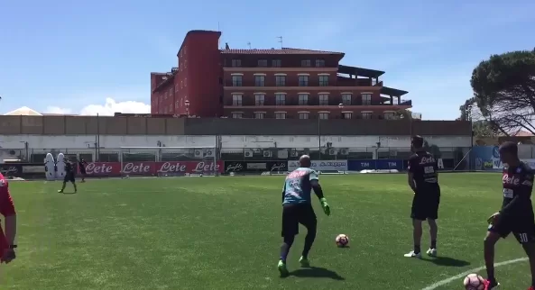 Durante l’allenamento di stamattina a Castel Volturno, Pepe Reina e Leonardo Pavoletti si sono messi in mostra in una gara sulla precisione di calcio.