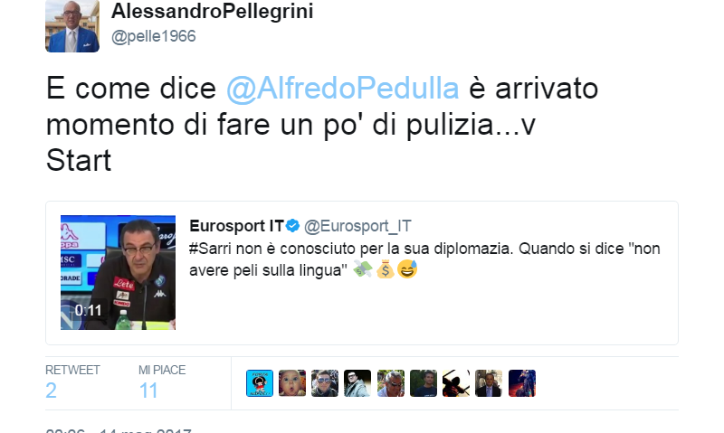 Botta e risposta su Twitter tra Alessandro Pellegrini, procuratore di Maurizio Sarri, ed il giornalista Alfredo Pedullà.