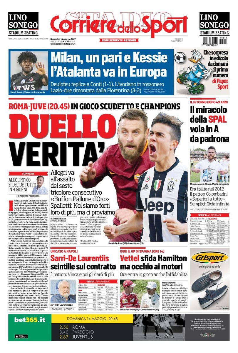 Il Corriere dello Sport infatti titola: “Duello verità“. Poi il mercato: “Milan, un pari e Kessie. L’Atalanta vola in Europa“. In taglio basso spazio al Napoli: “Sarri-De Laurentiis, scintille sul contratto“.