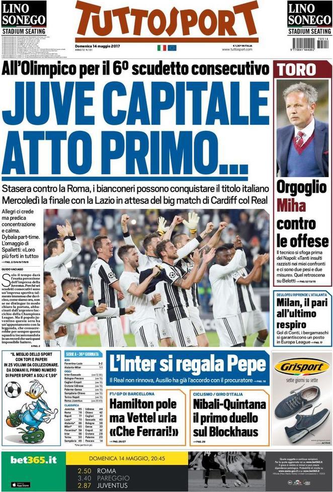 Tuttosport apre con: “Juve capitale atto primo“. Sul quotidiano torinese c’è spazio anche per il Torino: “Orgoglio Miha contro le offese“.