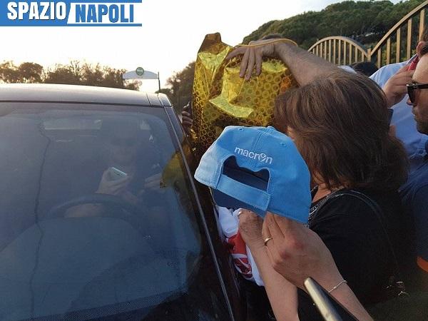 A ruota escono tutti i calciatori, anche Rafael e Ghoulam si fermano per una sessione di autografi. Sono ormai le 19 passate, eppure Mertens ancora non è uscito. Lo sconforto inizia a prendere il sopravvento. Serpeggia la voce che forse Dries sia già uscito. “Anche l’ultimo tentativo è fallito” – pensa ormai Mimmo. Poi arriva la svolta: l’ultima auto varca i cancelli del centro sportivo. “Deve essere per forza lui!“, gridano i presenti. Auto scura, occhiali da Sole, ma sagoma estremamente riconoscibile: si tratta proprio di Mertens! Tutti lo acclamano e il belga non sa resistere al richiamo della sua gente. Mertens accosta, il sogno di Mimmo è ormai realtà. Prima, però, spazio ai bambini. Giusto così. Anche la generosa signora che ha rifocillato il cagnolino poco prima riceve il suo premio: foto con Dries. Peccato che nella foga avesse dimenticato il cellulare in macchina. “E come ce la facciamo la foto?“, chiede un divertito Mertens. Tutto si risolve per fortuna. La foto la scatta un ragazzo con il suo cellulare e poi la passa su WhatsApp.