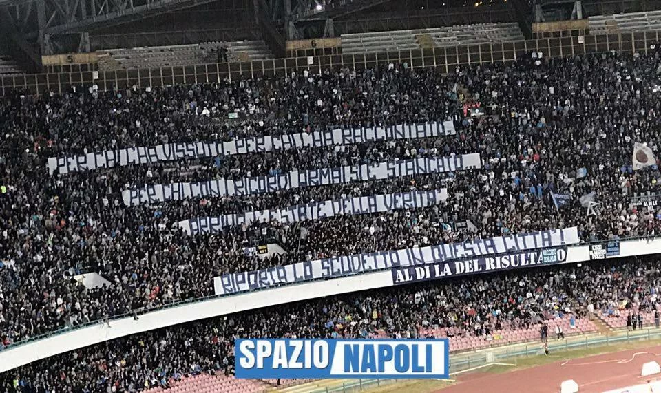 La Curva ha esposto uno striscione facendo una precisa richiesta al patron partenopeo Aurelio De Laurentiis: riportare lo Scudetto a Napoli, quello che manca da tanto, troppo tempo.