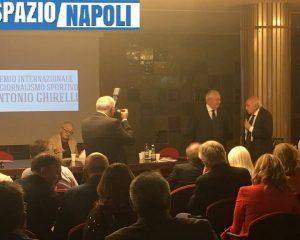 Uno degli ospiti premiati, e forse il più applaudito, è stato Corrado Ferlaino, presidente storico del Napoli di Maradona: “I presidenti di calcio dividono i giornalisti in due categorie: giornalisti che scrivono bene di te e quelli che ti scrivono male. L’unico che non riuscivo ad inserire in una o nell’altra categoria era proprio Antonio Ghirelli, perchè un giorno scriveva benissimo sul mio conto e dopo tre giorni scriveva l’opposto (ride, ndr). Quando poi, da qualcuno presente in sala, parte un mini coro da stadio ‘Un presidente, c’è solo un presidente’, lui dice: “Ma sapete cosa vuol dire essere napoletano? Il napoletano sa cosa significa esserlo, ma non lo riesce a spiegare a parole. È un qualcosa di unico ed inspiegabile”.