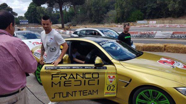 Si chiude questa sera il Motorshow 2017 inaugurato a Napoli venerdì, presso la Mostra d’Oltremare. Alcuni calciatori del Napoli sono ospiti di un evento organizzato dal dottor De Nicola. In foto vi mostriamo Christian Maggio che esce dall’auto dopo il giro veloce con Giancarlo Fisichella e Franco Medici sulla pista del Napoli Motorshow.