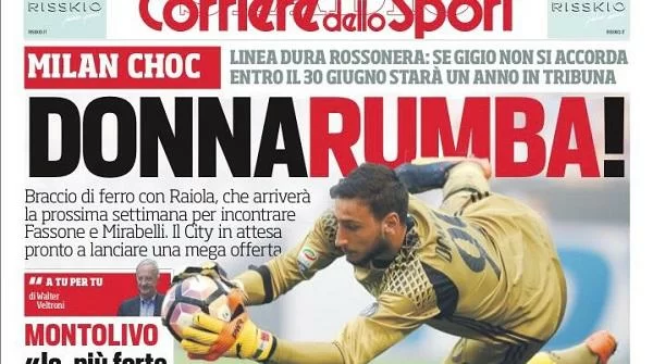 Il Corriere dello Sport apre così: “Donnarumba!“, facendo riferimento ad una decisione del Milan, per cui “se Gigio non si accorda entro il 30 giugno starà un anno in tribuna“. In taglio alto, il valzer degli allenatori: “Allegri resta, la Roma ricomincia da Di Francesco, Inzaghi aspetta il rinnovo“.