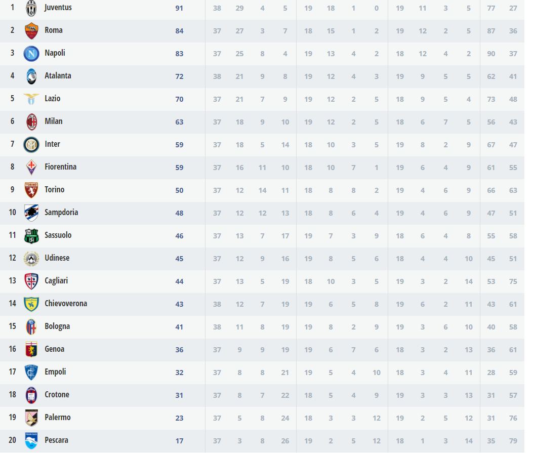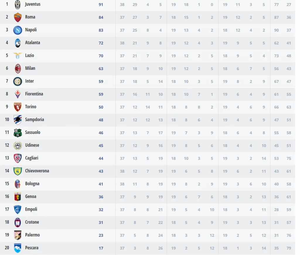 La Juventus vince in rimonta all’ultimo secondo contro il Bologna. Dopo la rete di Taider, i bianconeri ribaltano il risultato con Dybala e con il giovanissimo Kean al 94′. Il club allenato da Allegri conclude il campionato a 91 punti in classifica.