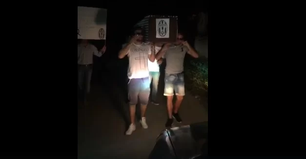 Non solo sfottò e festeggiamenti, ma anche goliardia ai massimi livelli. Subito dopo la sconfitta della Juventus in finale di Champions League contro il Real Madrid, alcuni tifosi avversari hanno organizzato un vero e proprio “funerale al triplete della Juventus”.