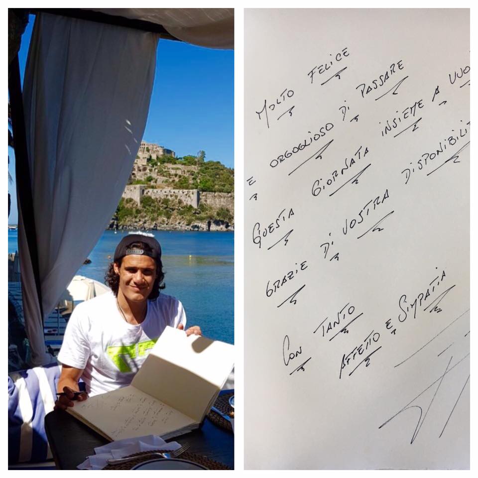 Oggi escursione ad Ischia. Tra mare e sole, Cavani si è concesso una sosta presso il “Giardino Eden”. Non solo la foto di rito, ma anche una dedica pubblicata direttamente sulla pagina Facebook della struttura ischitana.