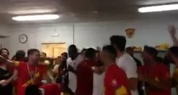 Continua la festa del Benevento. Tantissima gioia per la prima, storica, promozione in Serie A dei sanniti. Anche negli spogliatoi la gioia è irrefrenabile, tanto che i calciatori hanno iniziato ad intonare vari cori.