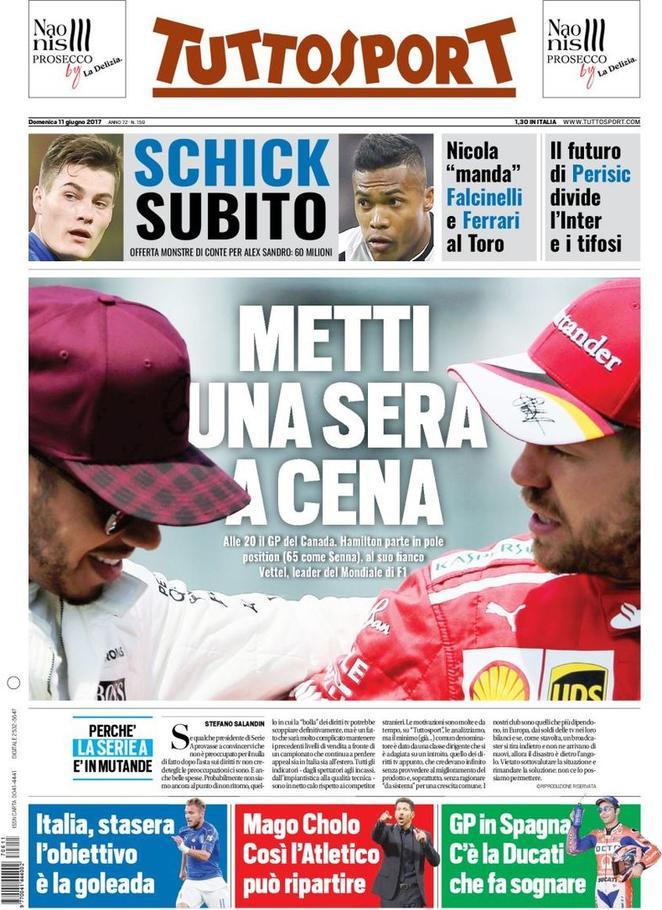 Tuttosport apre con i motori ma in taglio alto ecco anche qui la chiusura dell’affare Schick che arriva subito alla Juventus. In basso, riecco l’Italia con l’obiettivo goleada contro il Liechtenstein.