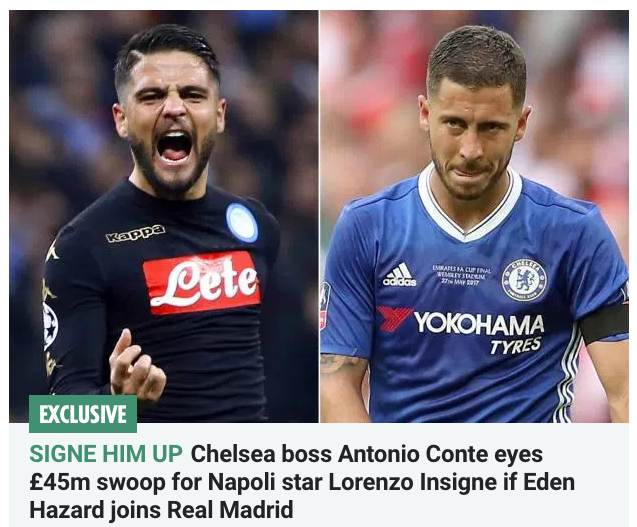 Il motivo: le avances del Real Madrid per Eden Hazard. Se Abramovich dovesse vendere il campione belga, il tecnico italiano vuole il gioiello del Napoli per la sua sostituzione.
