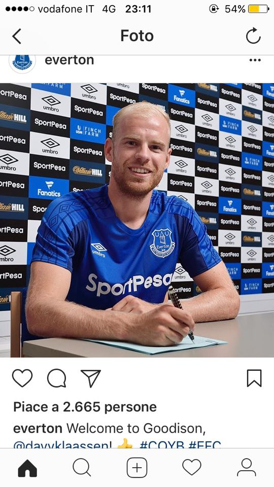 Davy Klaassen ha firmato con l’Everton. Il club ha pubblicato tramite il profilo Instagram la foto della firma del contratto.