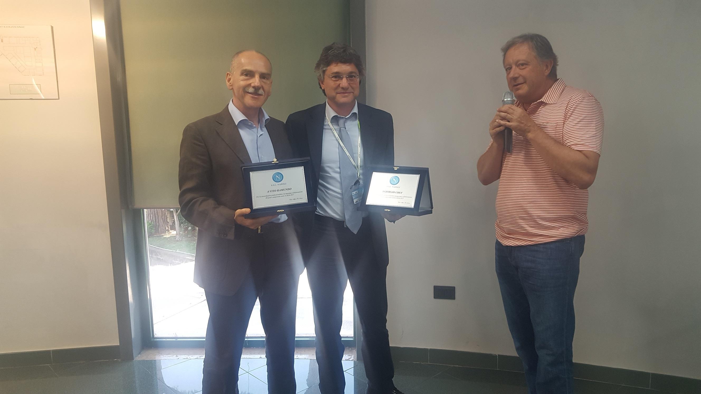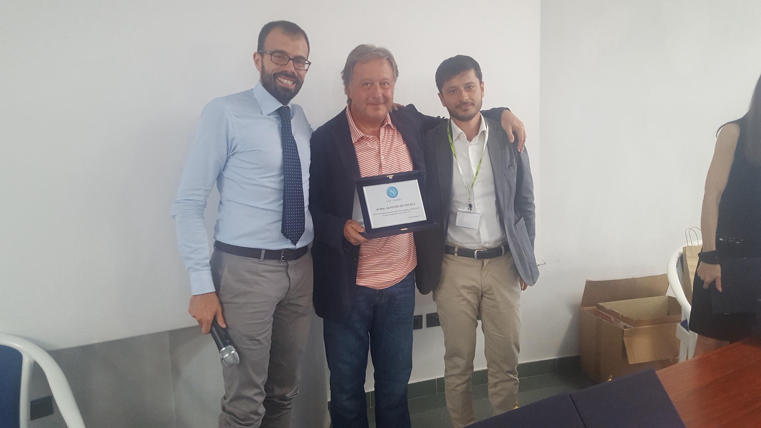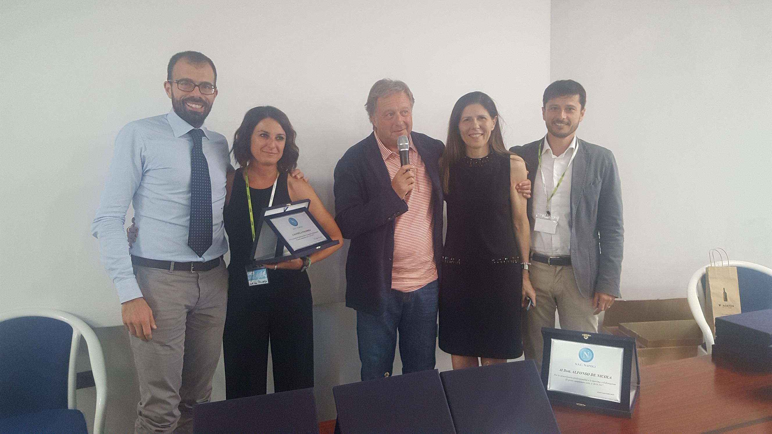 Si è svolto ieri al Centro Antares di San Nicola La Strada (CE) il congresso “La gestione della salute dell’attività sportiva” promosso dallo staff sanitario del Napoli, capitanato dal prof. Alfonso De Nicola. Nel corso della giornata è stata premiata la squadra dei consulenti medici e sono stati illustrati dati statistici del quadriennio 2013-2017 che incoronano il Napoli in assoluto come la squadra leader per il minor numero di infortunati e indisponibili della Serie A.