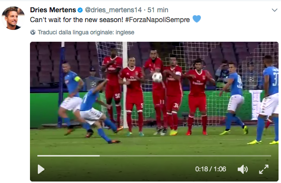 Il talento belga del Napoli, attraverso il suo profilo Twitter, ha pubblicato un video con i migliori momenti della sua stagione, scrivendo: “Can’t wait for the new season! Forza Napoli Sempre”