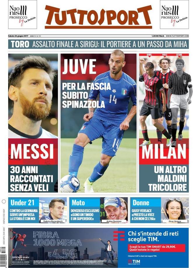 Tuttosport invece apre con Spinazzola: “Per la fascia subito lui“, riferito alla Juventus e al cartellino già di proprietà dei bianconeri.