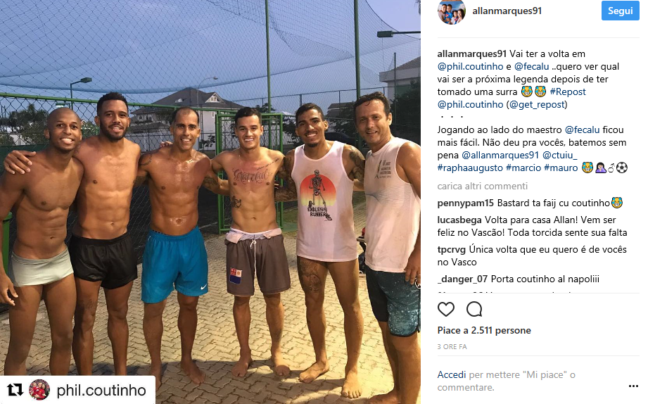 Allan intanto è ancora impegnato a godersi le vacanze, lo dimostra una foto pubblicata dal brasiliano su Instagram. Con lui anche l’amico Philippe Coutinho del Liverpool.