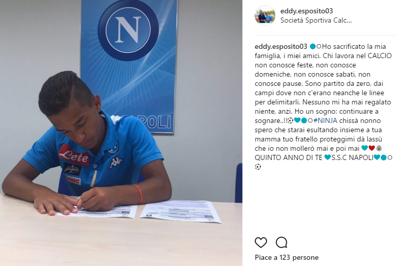 Il sogno continua per Eddy Esposito, calciatore dei Giovanissimi del Napoli. L’azzurrino, classe 2003, ha firmato per il quinto anno con la società partenopea.