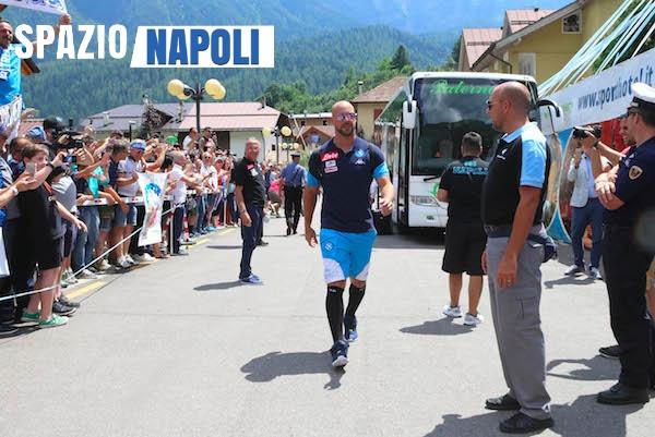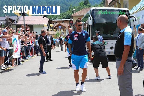 13.39 – Con quaranta minuti di ritardo sulla tabella di marcia, il Napoli è arrivato a Dimaro, accolto dai cori dei tifosi presenti all’esterno dell’Hotel Rosatti. GUARDA LE FOTO:
