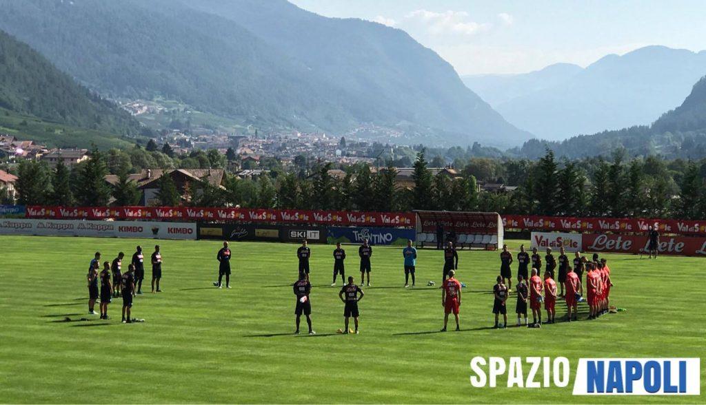 AGGIORNAMENTO – I calciatori sono appena scesi in campo ed hanno effettuato il minuto di silenzio a cui si è unito l’intero stadio di Dimaro dove sono presenti tantissimi tifosi azzurri. In tribuna ci sono stati anche momenti di commozione. Al termine del minuto di silenzio c’è stato un lungo applauso.