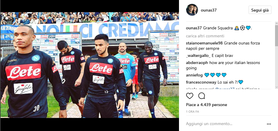 L’esterno franco-algerino non disdegna, però, i social. Pochi minuti fa ha pubblicato sul profilo Instagram una foto insieme a Leandrinho, Albiol, Reina e Koulibaly, accompagnando lo scatto con una frase: “Grande squadra”.