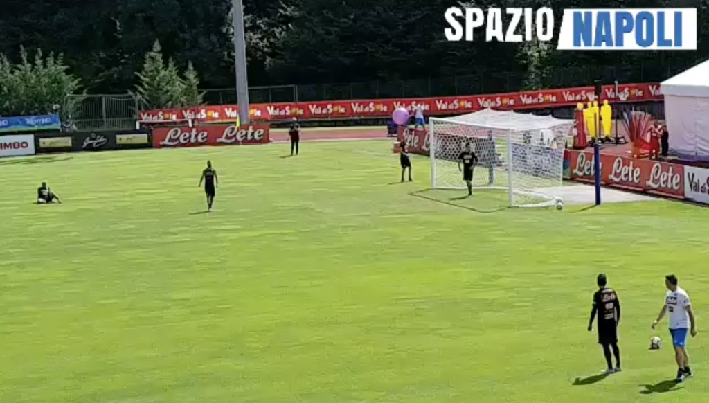 Il motivo? Al temine dell’allenamento Callejon, Mertens, Jorginho, Allan e Hamsik si sono soffermati in campo a provare i cross con tiri al volo. Particolare il fatto che in porta ci fosse addirittura Marek Hamsik che non ha sfigurato nemmeno nel ruolo di estremo difensore, vanificando la spettacolare rovesciata dell’attaccante belga.
