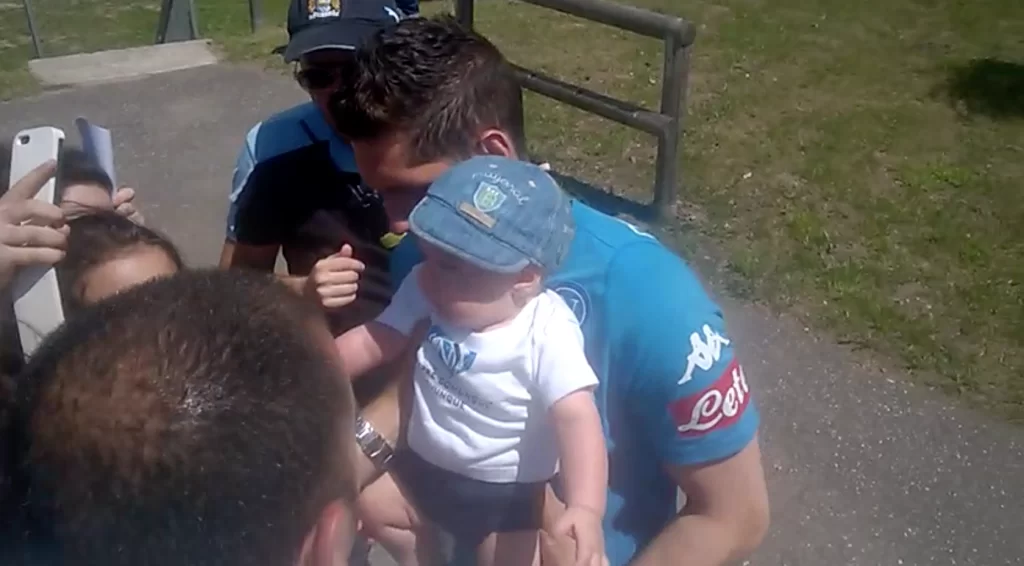 Protagonista è stato il portiere Rafael Cabral che, mentre firmava autografi e concedeva selfie ai supporters del Napoli, ha visto recapitarsi direttamente in mano un bellissimo bambino di soli 4 mesi.