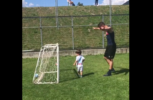 Pochi minuti fa ha postato sul suo profilo Instagram una “story” che lo ritrae in compagnia proprio del piccolino. Cosa fanno insieme? Ovviamente, giocano a calcio! Siamo pur sempre in ritiro…