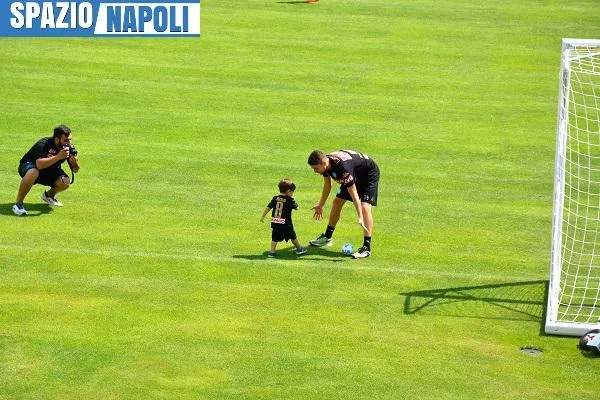 Bella scena a Dimaro al termine degli allenamenti. Quando il gruppo ha infatti lasciato il campo per tornare negli spogliatoi, il terreno da gioco è stato “conquistato” da alcuni bambini. Si tratta dei figli di Allan e Jorginho, che hanno avuto modo di giocare con i propri padri.