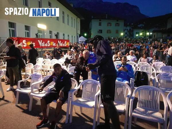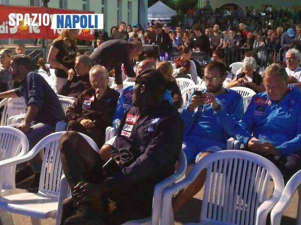 Alcuni azzurri, tra cui Insigne, Koulibaly, Ghoulam e Sepe, hanno assistito divertendosi all’evento: ad un certo punto le casse hanno mandato l’inno della Champions League, e anche i calciatori hanno urlato forte “The Champions!”