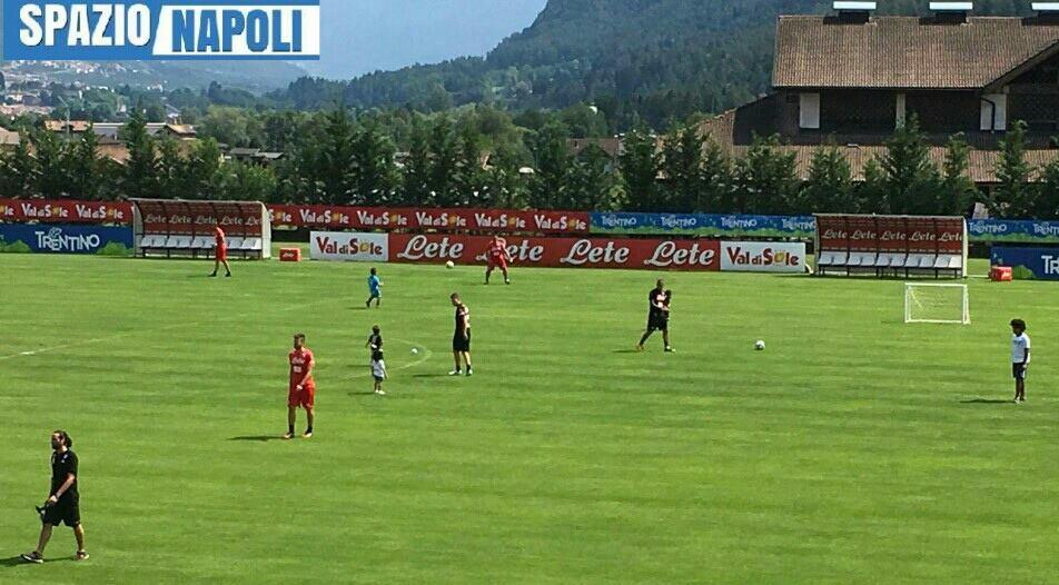 Un’altra bella scena a Dimaro, l’ennesima. Al termine della seduta mattutina, alcuni azzurri si sono intrattenuti per migliorare la tecnica individuale. Altri, invece, hanno colto l’occasione per far saggiare il campo da calcio ai figli.