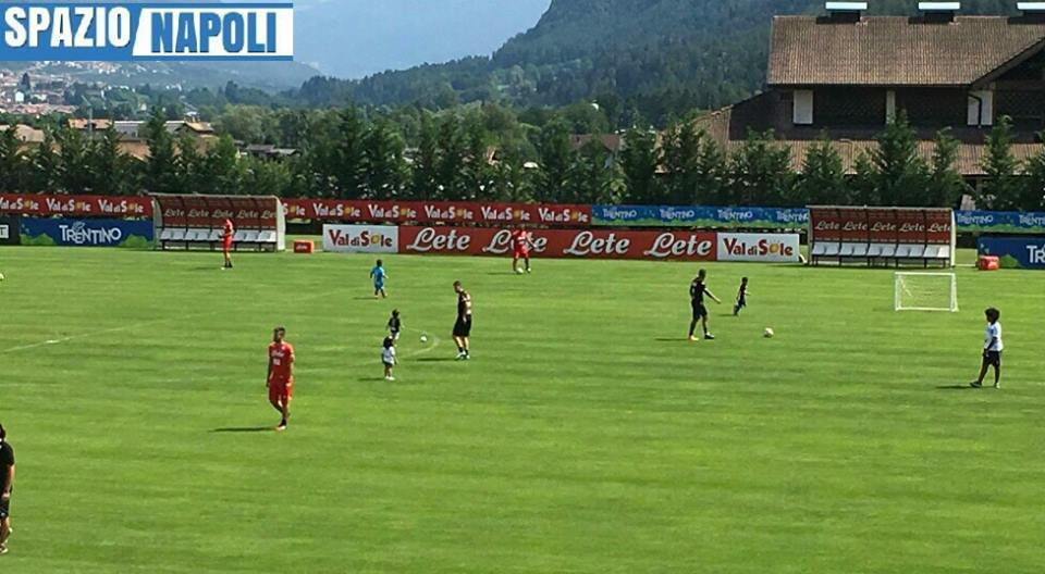 Un’altra bella scena a Dimaro, l’ennesima. Al termine della seduta mattutina, alcuni azzurri si sono intrattenuti per migliorare la tecnica individuale. Altri, invece, hanno colto l’occasione per far saggiare il campo da calcio ai figli.