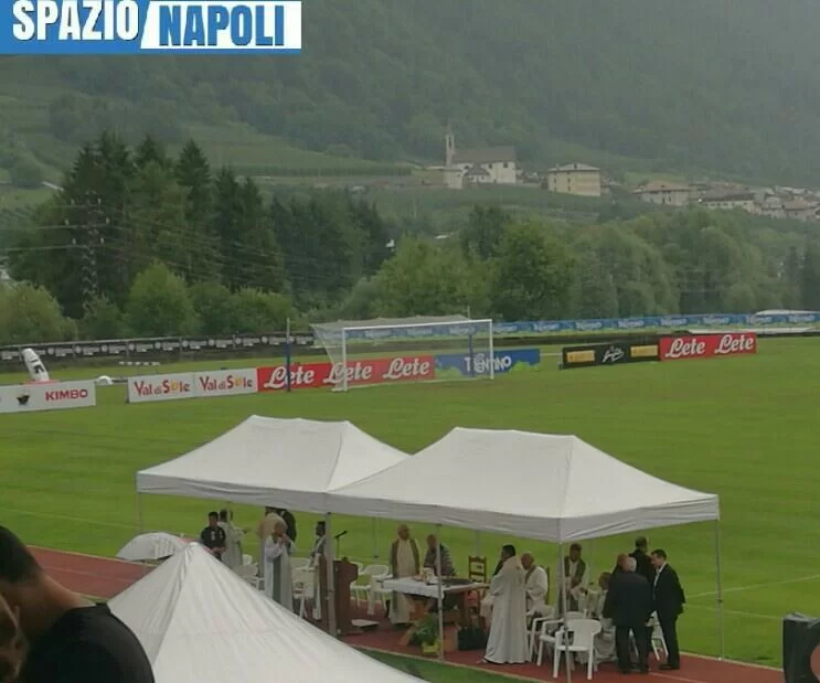 Dopo la seduta di allenamento mattutina, a Dimaro è arrivato il momento della Santa Messa di fine ritiro, presieduta dal cardinale Sepe.