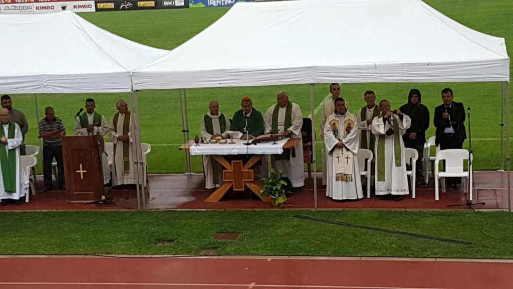 “Napoli bagnato, Napoli fortunato”, è un Cardinal Sepe scatenato qui a Dimaro. Che dopo la consueta messa di ‘benedizione’, ha sfidato la pioggia per rispondere ai giornalisti presenti.