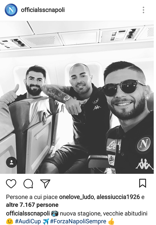 Intanto gli azzurri si divertono durante il viaggio. Il profilo Instagram della SSC Napoli posta diverse foto dei calciatori in aereo. Lo scatto ritrae Insigne, Sepe e Hysaj insieme: “Nuova stagione, vecchie abitudini”