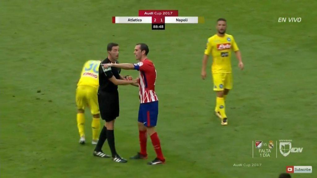 Ai tifosi del Napoli non è proprio andato giù l’atteggiamento che ha avuto oggi Diego Godin, capitano dell’Atletico Madrid.