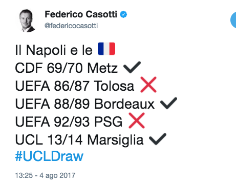 Sarà Napoli-Nizza al playoff di Champions League. Una squadra francese quindi sulla strada degli azzurri.