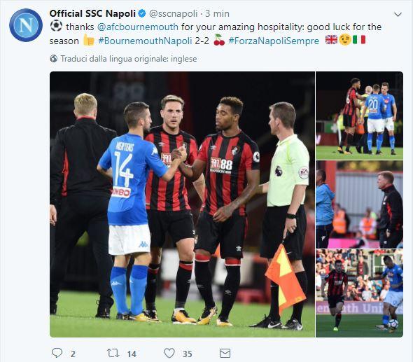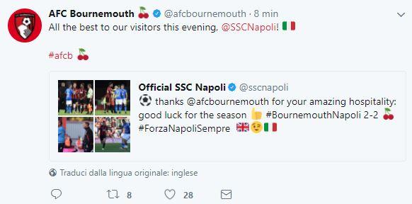 E il Bournemouth risponde: “All the best to our visitors this evening, @SSCNapoli!