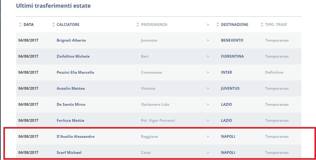 Arrivano in azzurro il ghanese Michael Scarf (classe ’99) e Alessandro D’Ausilio (classe 2001). Il primo è un terzino sinistro che arriva in prestito dal Carpi e andrà a rinforzare la Primavera di mister Giampaolo Saurini. Il secondo arriva in prestito dalla Reggiana: si tratta di un difensore centrale cresciuto nella Puteolana. Possibile che D’Ausilio si aggreghi alla formazione Allievi Under 17 degli azzurri.