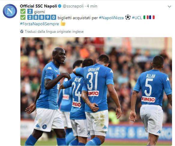 Tanti i tifosi che hanno deciso di acquistare il biglietto per sostenere i propri beniamini da vicino. Così come riferisce il club azzurro sul proprio profilo Twitter, in due giorni sono stati già acquistati ben 28.890 tagliandi. Cifre da record, che attestano, ancora una volta, l’amore della gente verso i colori azzurri.
