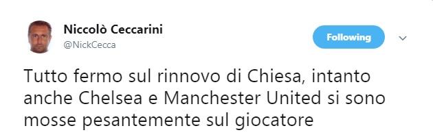 Niccolò Ceccarini, giornalista Mediaset, attraverso il proprio profilo Twitter ha dato degli aggiornamenti in merito alla situazione di mercato che riguarda Federico Chiesa.