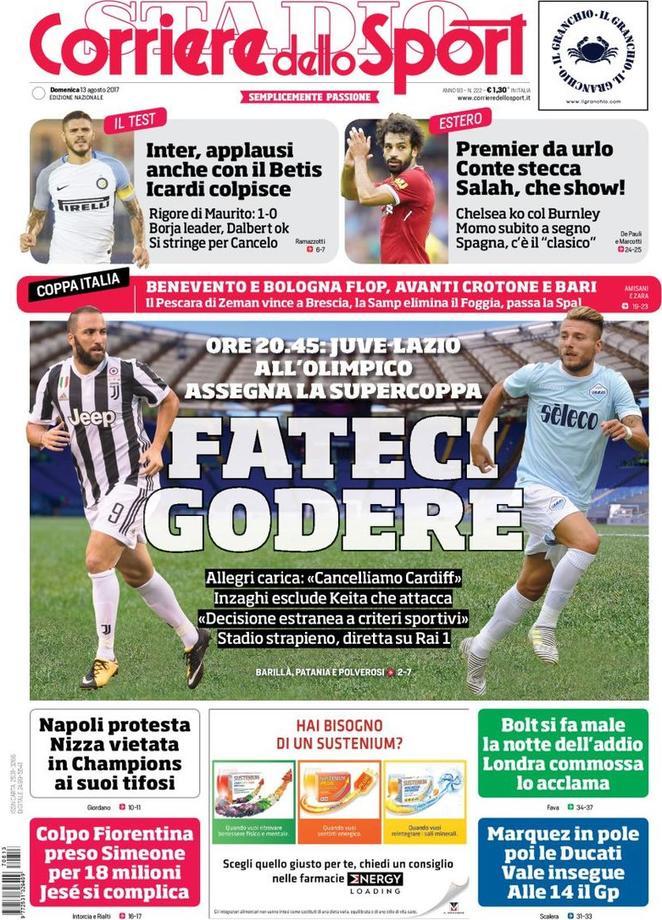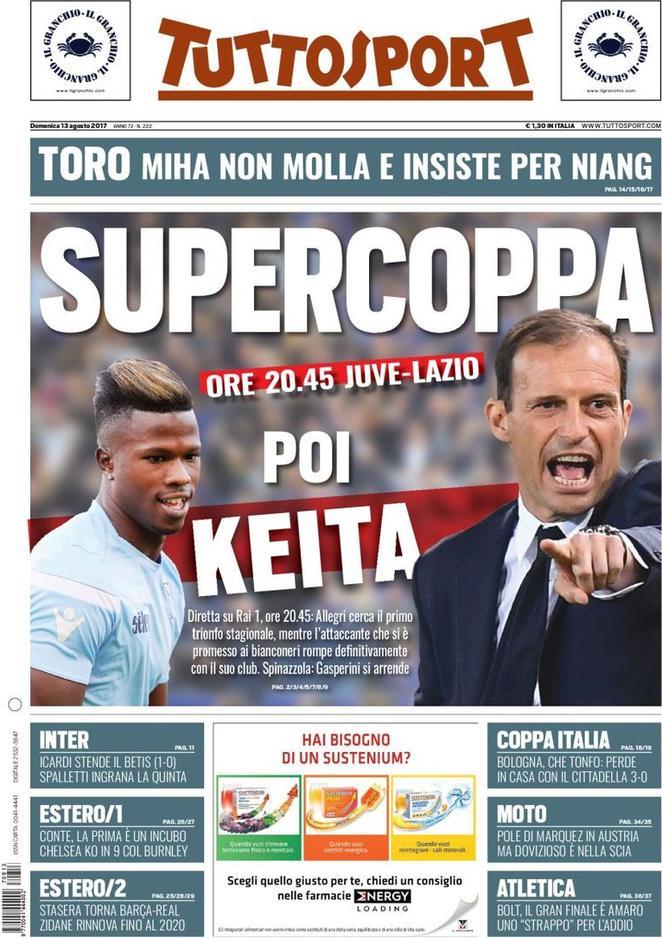 Su Tuttosport ampio spazio alla Supercoppa Italiana: “Juve-Lazio, poi Keita“.
