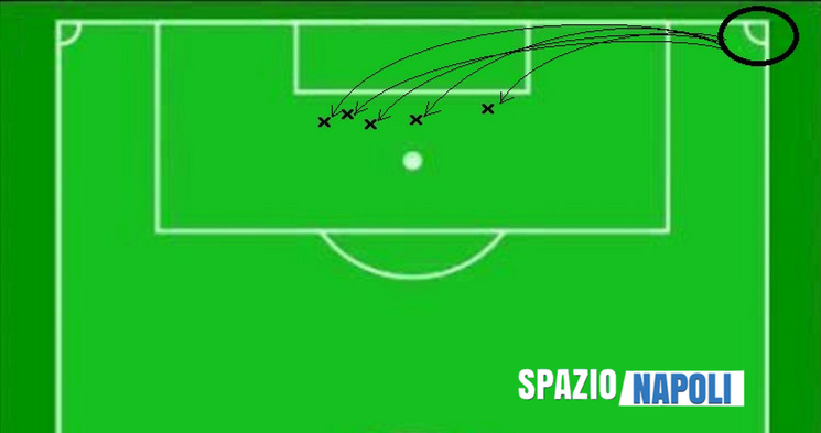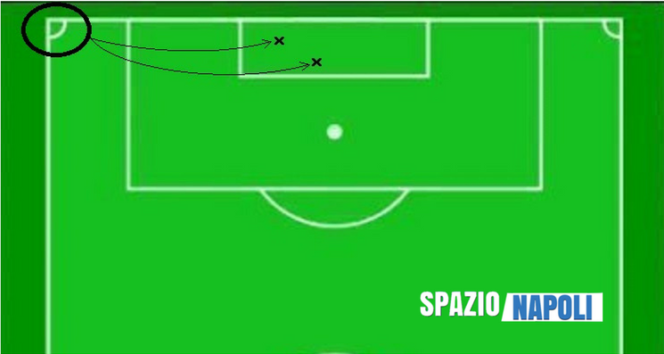 Angolo da sinistra (cerchio nero), si cerca di più il primo palo all’interno dell’area piccola